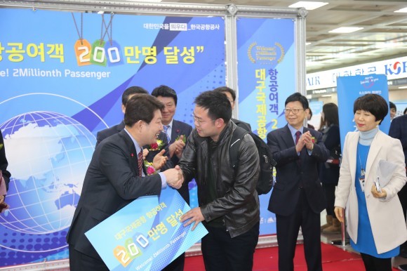권영진 대구시장은 “대구국제공항 이용객 200만 명 달성은 민-관 협치와 소통의 성공적인 작품이자, 520만 대구경북 시․도민의 쾌거이다”면서, “특히 내년「중국인 관광객 대구경북방문의 해」를 맞이하여 중국 노선 신․증설을 확대하는 한편, 국제노선을 다변화하여 대구경북 시․도민께서 인천, 김해공항으로 가야하는 불편을 최소화할 수 있도록 노력하겠다”고 말했다.