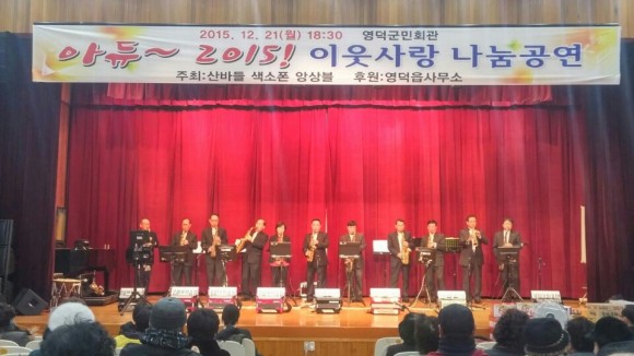 |  | | | ⓒ (주)영남도민일보 | | [영남도민일보] 홍인환 기자 = 영덕군 군민회관에서는 지난 21일 산바들섹스폰앙상블(회장 김진하)연주단의 영덕군민과 함께하는 이웃사랑나눔 송년음악회가 열렸다.