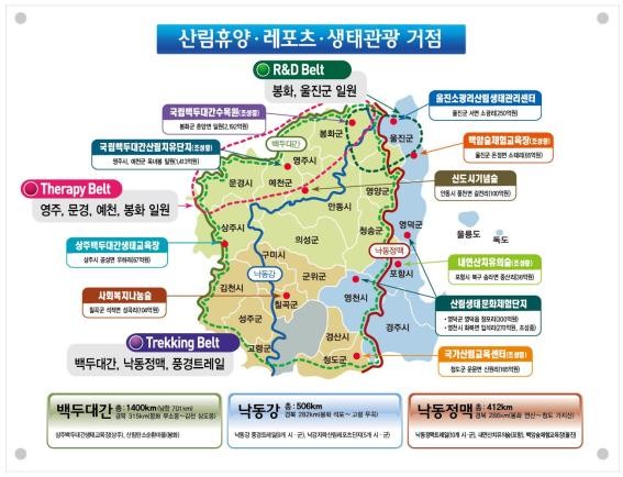 |  | | | ⓒ (주)영남도민일보 | | [영남도민일보] 김병한 기자 = 경북도는 생태계의 보고인 백두대간과 낙동정맥 등의 산림자원을 휴양과 산촌소득을 창출하는 신성장 동력원으로 집중 육성하여 ‘사람과 자연이 상생하는 에코-힐링(Eco-Healing)의 중심지’로 만들 계획이라고 밝혔다.