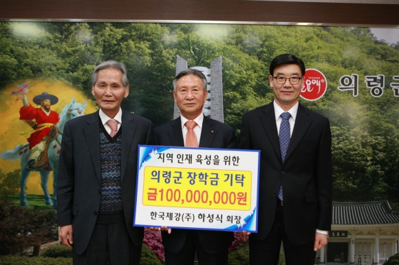 한국제강(주) 하성식 회장, 의령군장학회에 1억 원 장학금 기탁