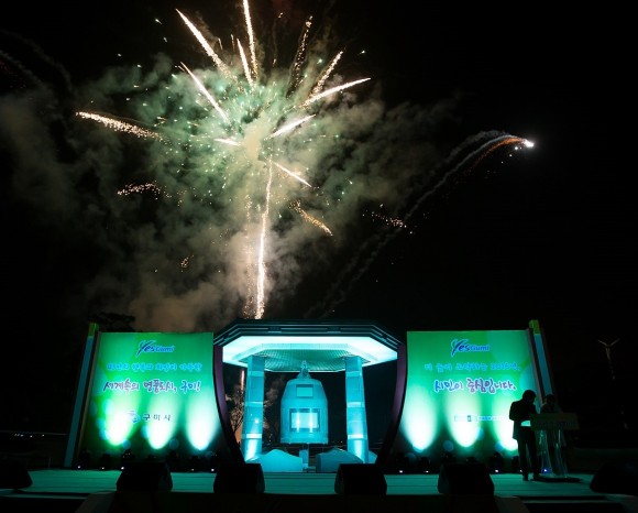 2016년을 밝히는 희망의 타종은 남유진 시장을 비롯한 기관 단체장과 시민들이 4개조로 나뉘어 총 33차례 이루어졌으며, 대형 현수막이 펼쳐지는 새해 소망 퍼포먼스와 구미새마을여성합창단과 ‘희망의 찬가’를 합창하며 2016년 새해를 맞는 벅찬 감동과 기대를 나누는 축제의 장이 되었다.
