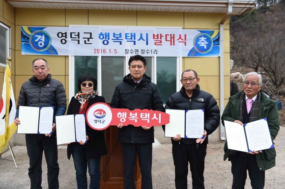 이희진 군수는 격려사를 통해 “영덕군 행복택시 사업은 정부3.0 실현에 발맞춰 수요자 중심의 맞춤형 서비스 제공과 군민 행정서비스 만족도 제고 및 교통복지 사각지대 해소를 통해 교통오지 지역주민들에게 교통복지 혜택이 돌아갈 수 있는 첫걸음이 될 것이다”고 말했다. 이용대상은 군청 홈페이지에 고시한 11개마을 19개 자연부락에 주민등록상 등록자에 실제 거주하여야 하고, 이용요금은 버스요금과 같이 인당 1,200원이며, 운행구간이 마을에서 읍면소재지까지인 타 시군과는 달리 해당마을에서 주생활권인 영덕, 강구, 영해면 소재지까지 바로 이용이 가능하다.