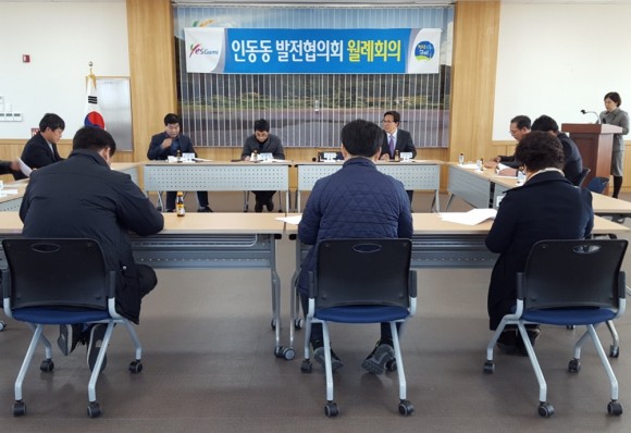 이날 발전협의회(회장 장영석)회의는 관내에서 추진되는 2016사업설명, 희망2016 나눔캠페인 성금모금 협조, 구미시 향토생활관, 서울 구미학숙 입사생 선발 홍보, 2016년 인동지역 합동 신년교례회, 등 당면사항을 전달하고, 지역발전을 위한 건의사항을 수렴․토의하는 시간을 가졌다.