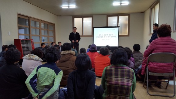 농작업안전보건마을 육성사업 대상인 영주시 평은면 평은리 마을회관에서 지난 1월 8일, 영남대학교 예방의학과 전만중교수와 순천향대학교 구미병원 김진석교수가 참석한 가운데 농업인의 농작업 재해의 예방 및 건강 증진 기반조성을 위한 컨설팅 보고회를 가졌다.