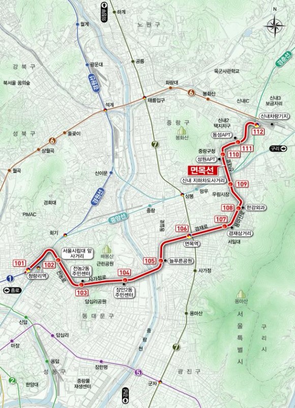 청량리(1호선)~면목(7호선)~신내(6호선, 경춘선), 총 연장 9.05㎞, 정거장 12개소