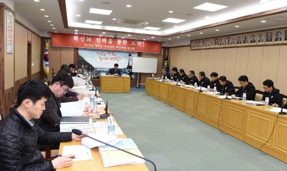 매년 초 실시하는 주요업무보고회는 군수가 직접 실과소장들에게 올 한 해 추진할 업무계획을 보고받고 군정에 대한 발전방향을 제시하는 자리로, 올해부터는 정부부처 업무보고 즈음에 맞춰 개최시기를 한 달 앞당기고 야간 보고를 도입하여, 2017년 국비확보 방향설정 등 중앙부처 업무순기와 발맞춰 빠르게 변화하는 행정환경에 민첩하게 대응하고자 노력하고 있다.