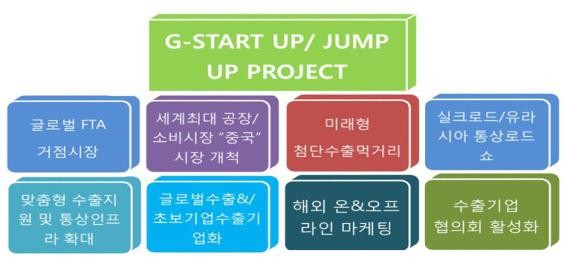 주요 수출확대 프로젝트는 G(Global)-START UP과 G(Gyeongsangbuk-Do)-JUMP UP이 포함된 ‘2016 글로벌 통상확대 수출마케팅전략’을 마련해 본격적으로 전개한다.