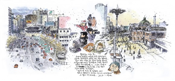 23명의 만화가들이 서울역 일대 스케치…시청로비 전시