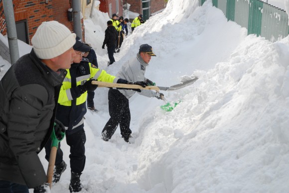 울릉경찰, 기습적 폭설에 따른 제설작업‘구슬땀’