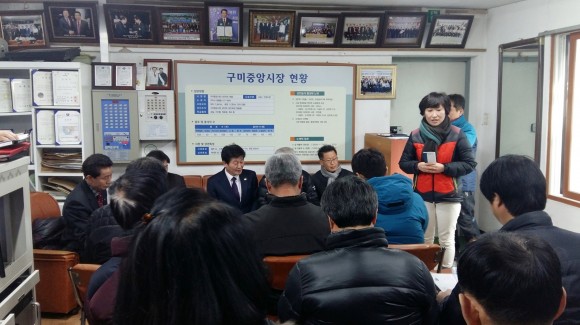 |  | | | ⓒ (주)영남도민일보 | | [영남도민일보] 안충도 기자 = 구미시(시장 남유진)에서는 1. 22(금) 11:00 구미새마을중앙시장 상인회사무실에서 상인회장 16명이 참여한 가운데 『전국상인연합회 구미시지부 정기총회』를 개최하였다. 이날 총회에서는 2015년 회계결산보고 및 주요사업 실적보고, 2016년도 전통시장 활성화사업 안내에 이어 시장 활성화방안 논의, 시정 홍보 순으로 진행되었으며,