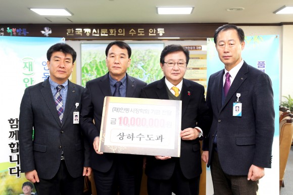 안동시는 지난해 환경부 시군평가에서 노후상수도관로 교체와 누수탐사, 긴급복구로 누수율을 줄여 유수율 4.4% 상승으로 연간 수돗물 생산량 86만톤 절감으로 예산을 절약하는 등 물 수요관리에 높은 평가를 받아 전국 최우수 자치단체로 선정됐다. (재)안동시장학회 권영세 이사장은 “마련된 장학금이 지역의 우수인재양성에 소중하게 쓰이도록 최선을 다하겠다.”며 장학금 기부에 대한 감사의 인사말을 전했다.