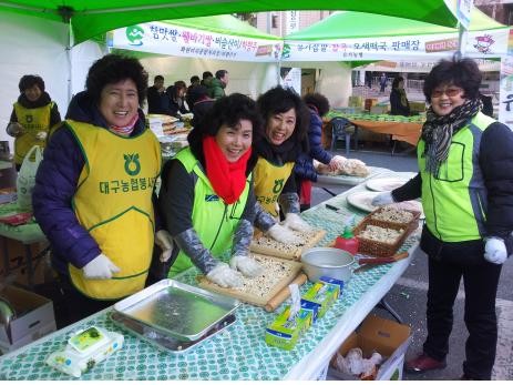 |  | | | ⓒ (주)영남도민일보 | 매년 열리던 시청 앞 설맞이 장터에 더하여 올해에는 동구 혁신도시 공공기관인 한국감정원과의 협력을 통해 감정원 앞마당에서도 장터를 열어 혁신도시에 근무하는 직원과 지역 주민들에게 대구의 우수한 농특산물을 알리고, 설 명절 선물로 대구 농특산물을 구매할 수 있도록 준비했다.