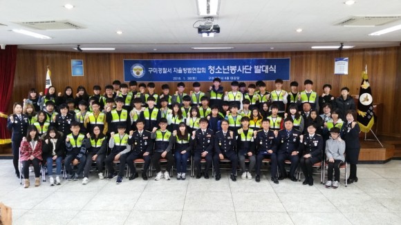 |  | | | ⓒ (주)영남도민일보 | | [영남도민일보] 안충도 기자 = 구미경찰서(서장 김대현)는 2016. 1. 30(토) 구미경찰서 4층 대회의실에서 청소년봉사단원 70여명을 비롯해 학부모 등 100여명이 참석한 가운데 구미경찰서 자율방범연합대 청소년봉사단 발대식을 개최하였다.