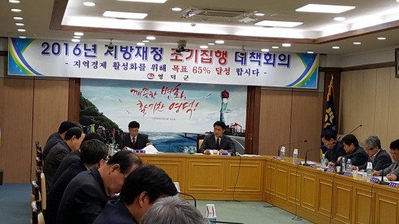 올해 상반기 조기집행 자체목표를 65%(1,500여억원 집행)로 설정하고 조남월 영덕부군수를 단장으로 4개반 편성 추진단을 구성 운영하면서, 이에 따른 대책회의를 실과소장․읍면장 전원이 참석한 가운데 2월 1일 개최했다.