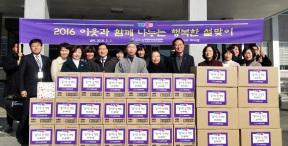 봉사단체인 국제위러브유운동본부 구미지부는 식용류 선물세트와 떡국 떡 등 100세트를, 참조은요양병원에서는 쌀 20㎏, 30포를 구미시 관내 홀로 어렵게 생활하시는 노인 130명에게 위문품을 전달하여 훈훈한 설 명절이 되도록 하였다.