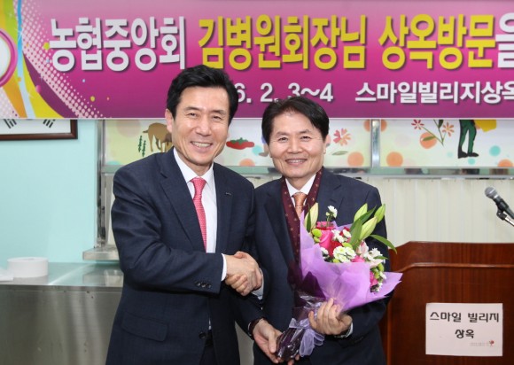 지난달 12일 농협중앙회장 선거에서 당선된 김병원 당선자는 취임에 앞서 농정현장을 방문하는 일정의 일환으로 창조농업의 모범사례를 마련하기 위해 명예이장으로 활동했던 상옥스마일빌리지를 찾아 주민들을 격려하고, 이강덕 포항시장과 만나 포항지역 농업 발전방안에 대한 의견을 나눴다.