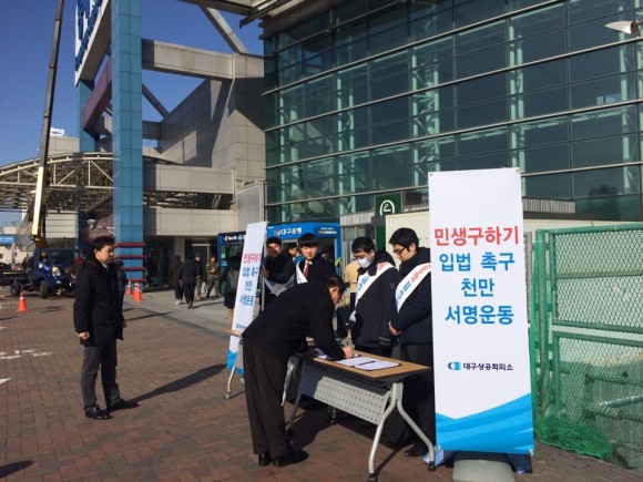 대구상의는 민생구하기 관련 법안의 입법 필요성에 대한 공감대 형성과 국회의 조속한 입법 처리를 촉구하기 위해 지난 1월 18일부터 지역 경제계와 시민들을 대상으로 서명운동을 전개하고 있다.