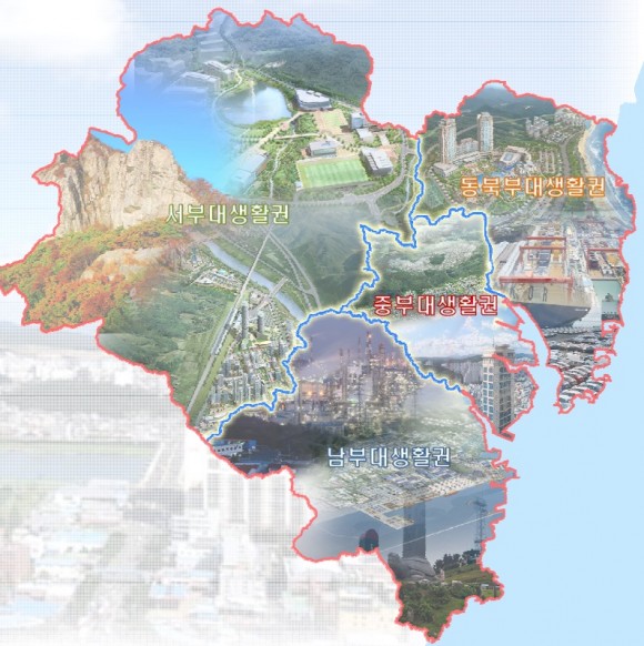 생활권 설정은 2025년 7개 대생활권에서 지형여건 및 이동권 등 사실상 동일생활권을 형성하는 지역을 대상으로 4개 대생활권으로 통합 조정하여 탄력적인 개발사업 추진과 합리적인 생활권 관리가 되도록 설정했다.