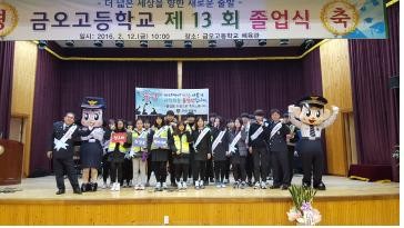 |  | | | ⓒ (주)영남도민일보 | | [영남도민일보] 안충도 기자 = 2016. 2. 12. 10:00경 관내 졸업식이 열리는 금오고등학교를 방문하여 투비폴 동아리 학생 20여명과 경찰관이 함께 강압적인 졸업식 뒤풀이 청소년 선도·예방 활동을 전개하였다.