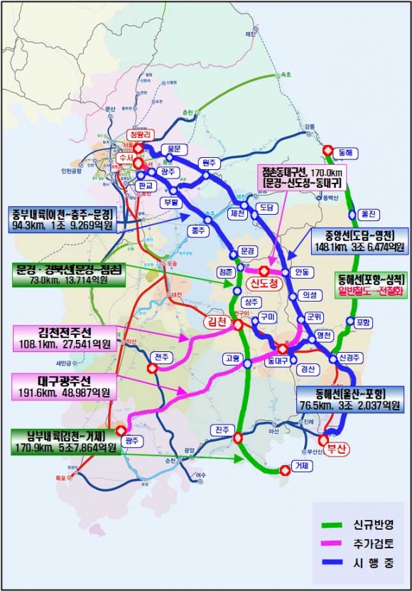 중부내륙철도, 남부내륙철도, 구미산단선, 지천대구산단선, 동해중부선 전철화 등 대부분 사업이 반영