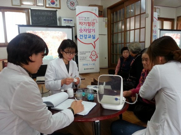 2월부터 12월까지 연중 운영되는 건강교실은 관내 331개 경로당을 찾아가 혈압, 혈당 수치 측정과 건강 상담, 고혈압, 당뇨병 예방관리교육 및 심뇌혈관질환의 심각성과 예방 가능성에 대한 주민 인식을 높이기 위해 추진하고 있다.
