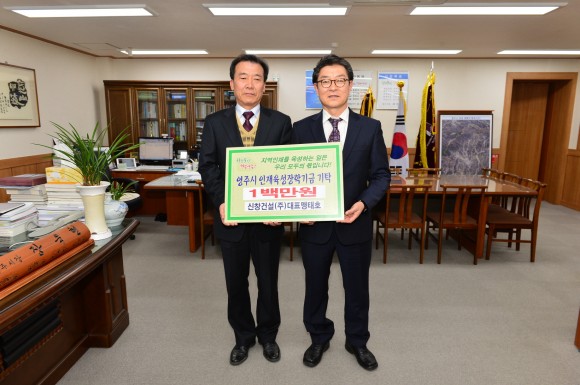 영주시 상망동에 소재한 신창건설(주)은 금속구조창호, 실내건축, 도장공사를 하는 전문건설·건축업체로서 2011년 1백만원의 장학금을 기탁한 바 있으며“학업에 전념하는 지역의 우수한 인재를 키우는 데 밑거름이 됐으면 좋겠다”고 말했다.