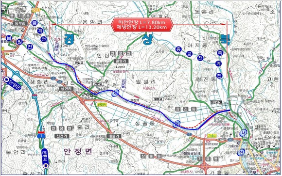 풍기읍 동부리에서 창진동 죽계천 합류부(7.8km) 구간에 있는 교량 4개를 개체하고, 자연형 호안, 산책로, 자전거도로 등이 있는 생태하천으로 조성하여 재해 예방 기능은 물론 주민생활편의를 제공하고 자연친화적인 하천 문화공간으로 조성한다는 계획이다.