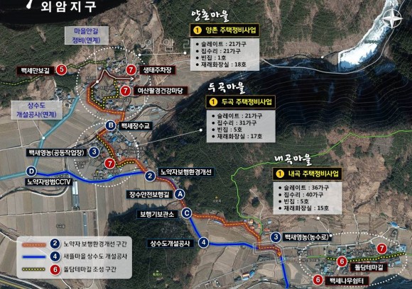 군은 이번 선정을 위해 지난해 하반기부터 주민생활여건이 취약한 지역을 발굴하고 주민주도의 추진위원회 등을 운영해 왔다. 여항면 외암지구 세부사업으로는 ▲슬레이트 지붕개량, 빈집정리, 재래식화장실 정비 등의 주택정비사업 ▲여항지구 상수도 개설공사와 연계한 마을 내 지방상수도 설치 ▲노약자 안전보행길 등의 기반시설 정비로 주민 생활안전 확보 ▲공동체 활성화를 위한 여산팔경 건강마당, 돌담테마길 조성 등의 마을경관 개선으로 쾌적한 청정촌 조성 ▲어르신 건강교실, 지역공동체 활성화를 위한 주민역량강화사업 등으로 군은 이번 사업을 통해 천혜의 자연환경을 갖춘 여항면의 명성을 더 높일 수 있을 것으로 기대하고 있다.