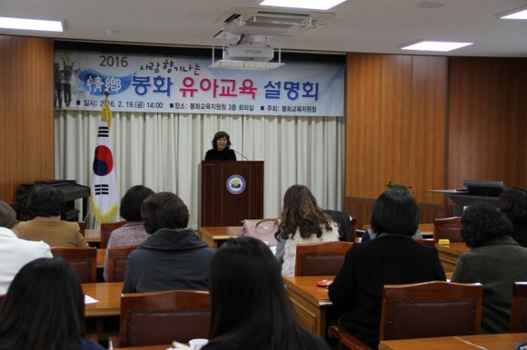 |  | | | ⓒ (주)영남도민일보 | | [영남도민일보] 고기훈 기자 = 봉화교육지원청(교육장 김종길)은 2월 19일(금) 봉화교육지원청 3층 회의실에서 관내 공‧사립유치원 교원을 대상으로 ‘2016 사람 향기나는 정향 봉화 유아교육 설명회 및 아동학대 예방교육 연수회’를 가졌다.