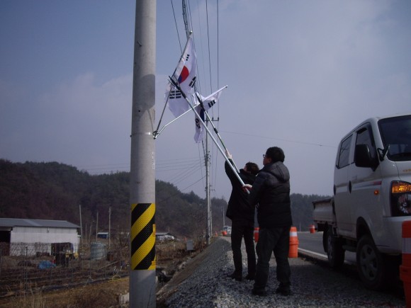 세찬 봄바람에도 국지도 32호‧지방도 901호 14.0km 500여개 가로기 게양