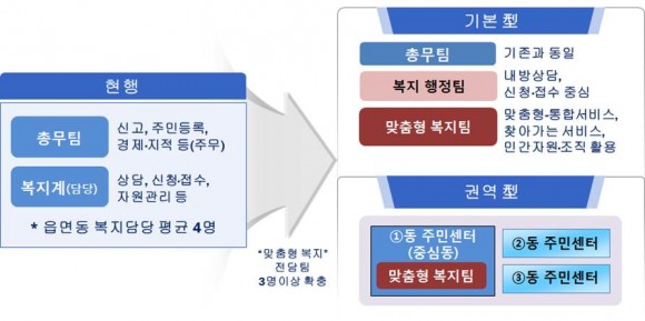 맞춤형 복지팀은 복지통․이장, 지역사회보장협의체 위원 등과 협력하여 도움이 필요한 주민을 발굴하고 장애인․노인 등 거동이 어려운 분들을 대상으로 방문상담 업무를 담당한다. 또한 복지기관 등 민간자원과의 연계로 복지사각지대 해소에도 적극 나설 예정이다.