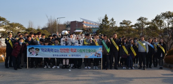 榮州署 등굣길 학교폭력 근절을 위한 캠페인을 펼쳤다