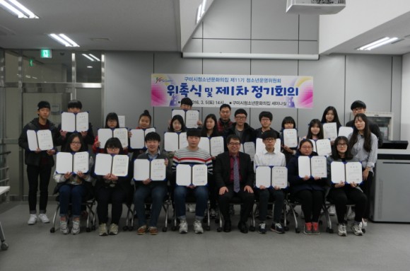 이날 위촉식은 위촉장 수여, 청소년운영위원 자기소개, 2016년 운영위원회 활동계획 논의 순으로 진행되었다.