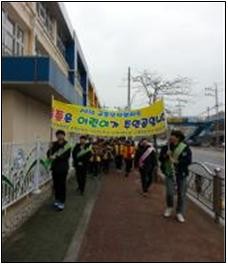 전교어린이회 임원들과 학급어린이회 임원 21명은 조끼를 맞춰 입고 손팻말을 들고 교통 안전 의식을 일깨우는 구호를 외쳤다. 이 시간에 등교하는 많은 어린이들도 진지하게 이 모습을 보고 지나갔다.