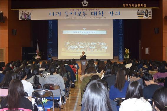 |  | | | ⓒ (주)영남도민일보 | | [영남도민일보] 권기한 기자 = 영주여자고등학교(교장 장석기)는 2016년 3월 19일(토)부터 5월 28일(토)까지 5회에 걸쳐 “ 미리 들어보는 대학 강의”를 시작한다.