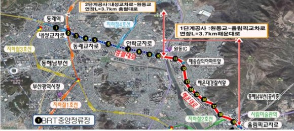 부산시, 해운대로(원동IC~올림픽교차로, L=3,700m) 중앙버스전용차로(BRT) 설치공사 3월 23일부터 본격화
