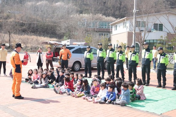 군은 세라어린이집 내 화재발생을 가상 상황으로 설정하고, 원생들의 화재대피 및 소화기 사용법 훈련 등 재난대피 훈련을 1시간 동안 진행했다.