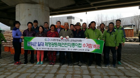이날 행사는 자연정화활동과 병행하여 폐형광등, 폐건전지, 종이컵 수거함 배부행사도 같이 실시하여 읍․면 마을회관에 직접 전달하였다.