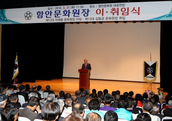 이어진 취임식에서는 다양한 분야에서 활발한 활동을 펼치며 군민화합과 지역발전을 이끄는데 앞장서 온 김동균 신임원장의 약력을 소개했으며, 취임사를 통해 품격 있는 함안문화의 진흥을 위해 노력하겠다는 포부를 밝혔다.