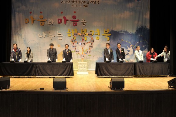 |  | | | ⓒ (주)영남도민일보 | | [영남도민일보] 김옥순 기자 = 경상북도는 4월 1일(금) 14:00시 문경 문희아트홀에서 '마음과 마음을 나누는 행복 경북' 이라는 주제로 2016년 정신건강의 날 기념행사를 개최했다.