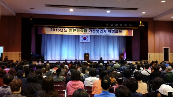 |  | | | ⓒ (주)영남도민일보 | | [영남도민일보] 안충도 기자 = 구미시(시장 남유진)는 구미시외식업구미지부(지부장 임호기) 주최로 4월 4일부터~ 4월 8일 까지 5일간 구미대학교 및 선산문화회관에서 기존영업주 4,000여명을 대상으로 식품안전관리를 위한 위생교육을 실시한다.
