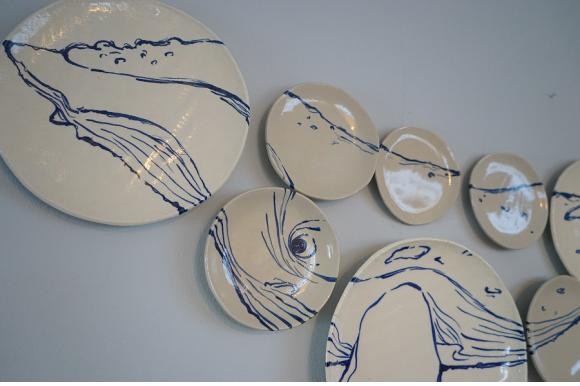 그 중에서 박진경 작가의 라는 작품이 눈에 띈다. Pakicetidae는 가장 오래된 고래화석으로 파키스탄의 초기 에오세(Eocene) 지층에서 발견된 약 5000만년 전에 생존했던 파키케투스류를 지칭하는 말이다. 박진경 작가가 아이슬란드를 방문했을 때 곳곳에서 볼 수 있는 고래화석을 보고 그것을 모티브로 도자 위에 그린 작품으로, 원형의 도자기는 무한으로 반복되는 파도이자 끝없이 펼쳐진 바다를 상징한다. 바다를 상징하는 도자 위를 유영하는 혹등고래 이미지를 통해 대양을 지배해 온 고래의 위상과 경이로운 자연의 아름다움을 표현하고자 하였다.