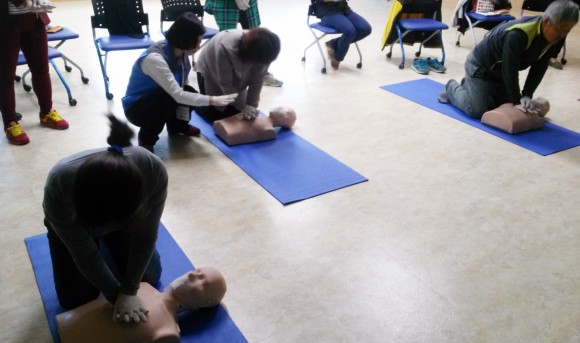 이번 교육은 보건소 일반강사 5명이 성인·영아 심폐소생술에 대한 이론과 실습, 자동제세동기 사용법 실습 및 이물질에 의한 기도폐쇄 응급처치법에 대한 교육을 3시간동안 진행했다.