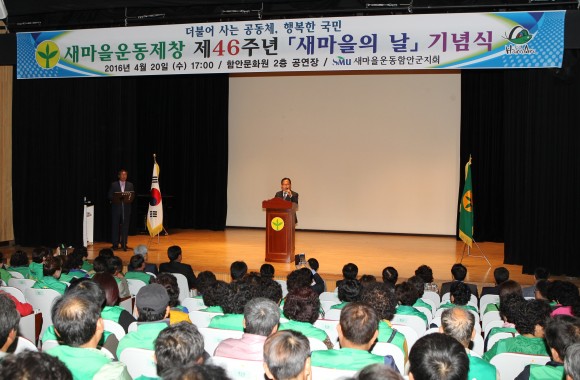 |  | | | ⓒ (주)영남도민일보 | | [영남도민일보] 김진규 기자 = 1970년부터 시작된 범국민적 지역사회 개발운동인 새마을운동의 46주년을 맞아 새마을운동함안군지회(지회장 박용규)는 지난 20일 오후 5시, 함안문화원 2층 공연장에서 차정섭 군수, 김정선 군의회의장을 비롯한 유관기관·단체장, 지회 임원, 읍·면 새마을지도자 등 150여 명이 참석한 가운데 ‘새마을운동 46주년 새마을의 날 기념식’을 개최했다.