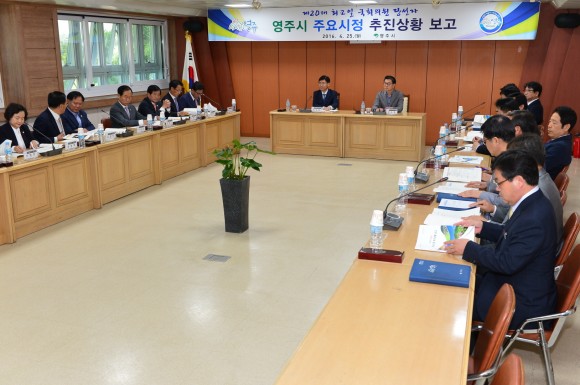 이날 보고회에서는 중앙선 복선전철화 사업에 따른 영주역사 신축 국비확보와 한국문화테마파크 조성 사업, 국지도 28호선(단산~부석)건설 공사 등 국비확보에 힘을 모으기로 했으며,