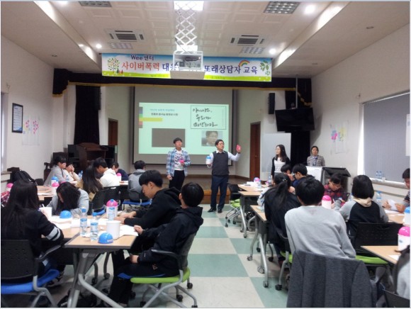 이번 교육은 동국대학교 경찰행정학과 박찬혁 강사의 ‘사이버학교폭력 예방과 또래상담자 체험’을 주제로 진행되었다. 사이버 학교폭력 모의재판을 통해 참여 학생들 스스로 사이버학교폭력에 대한 잘못된 상황을 평가해 보는 자리가 되었다.