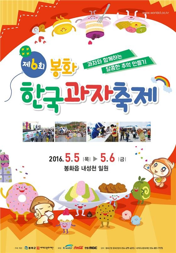 |  | | | ⓒ (주)영남도민일보 | | [영남도민일보] 고기훈 기자 = 과자와 함께하는 달콤한 추억 만들기’란 주제로 5월 5일(목)~6일(금) 양일간 봉화 내성천 체육공원과 후토스 동산에서 제6회 한국과자축제가 개최된다.
