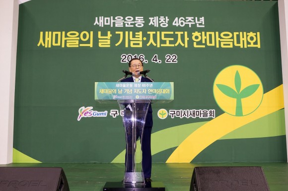 이번 대회를 주관한 김봉재 구미시새마을회장은 새마을운동 제창 46주년을 맞이하여 「새마을의 날」기념식 및 지도자 한마음대회 개최함을 매우 뜻깊게 생각하며, 새마을운동 종주도시 구미의 새마을 가족으로서 자부심과 긍지를 가지고 새마을운동의 활성화를 위하여 적극적인 참여를 당부하였으며, 지역사회 발전을 위해 헌신 봉사하는 마음으로 이웃사랑을 실천하고 더불어 잘사는 지역공동체 실현에 앞장 서 오신 새마을지도자 여러분들께 감사를 표한다.”고 말했다.