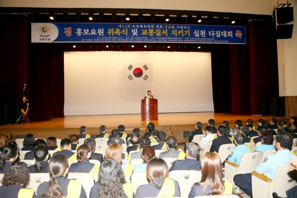 거리질서 계도 및 교통질서 확립을 위해 홍보요원을 위촉하고 명실상부한 성공적인 도민 축제가 될 수 있도록 전회원이 교통질서 지키기 계도요원의 역할을 성실히 수행할 것을 다짐하는 실천다짐 대회에 도단위 기관단체장, 모범운전자 회원, 교통가족 등 800여명이 참석했다.