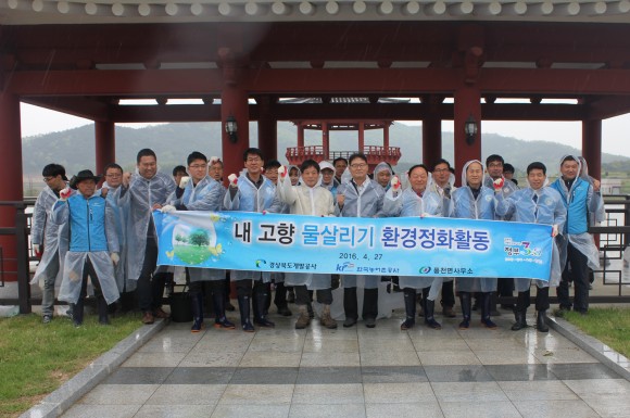 |  | | | ⓒ (주)영남도민일보 | | [영남도민일보] 김창기 기자 = 풍천면사무소(면장 박기섭)는 4월 27일 경북도청이전신도시 내 호민지에서 한국농어촌공사, 경상북도개발공사와 함께 ‘내고향 물살리기’ 환경정화 활동을 실시했다. 정부에서 적극 추진 중인 부처 간 소통의 일환으로 지역 관계기관과의 협업체계를 구성해 깨끗한 도시환경 조성을 위해 실시된 이번 환경정화활동은 한국농어촌공사의 주관으로 각 기관 50명의 직원들이 참여해 호민지 무단출입 방지 펜스 보수, 낚시꾼들이 투기한 쓰레기 수거 등의 활동을 펼쳤다. 각 기관장은 “앞으로 관계 기관들이 서로 협력하여 지역 환경개선 및 발전을 위해 앞장서고, 지역사회에 좋은 영향을 미칠 수 있는 기회를 마련하도록 노력하겠다.” 는 각오를 밝혔다.